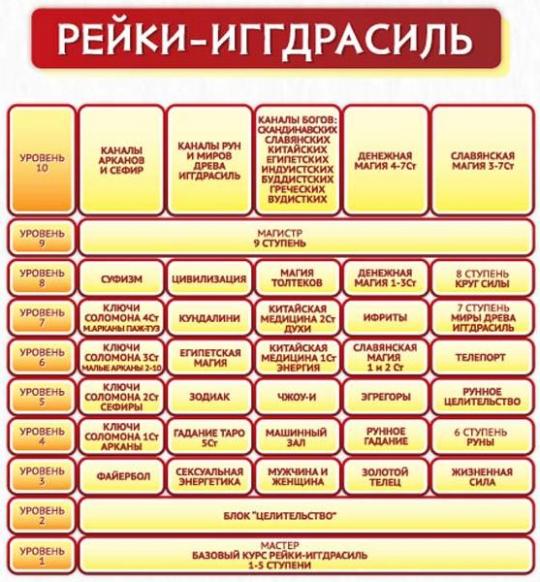 Базовый курс Рейки-Иггдрасиль содержит 5 ступеней.